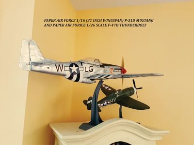 1/26 - "Walnut scale" sized - good for 17-20" wing. $8 plus $3 shipping. Just click the link below. Showing our 1/16 Mustang on stand next to our 1/26 Thunderbolt.