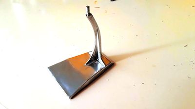 Made entirely from cardstock pieces that are cut out with scissors and assembled with glue. Pieces are cut out and laminated to create a strong ply that is very rigid. The stand design is very stable and can hold the model at various pitches and angles, even when tipped accidentally. White glue and scissors are all that are needed to complete the kit. The natural color is white paper, and the kits must be spray painted for added color and protection. A detailed picture book and written instructions are included so you aren't left guessing what to do next! Personal duplication permission is included with each kit, so buy 1 and get as many stands as you can print.