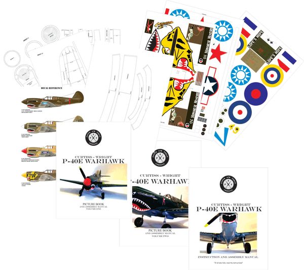 Every kit comes with part sheets, peel-n-stick satin decals with 4 different schemes to build, a decal reference sheet, a buildable working prop (deadstick and cruzer lines only) , and 3 packed full books of instructions. At Paper Air Force, you get two volumes of picture book instructions and one book written - usually only needed if you get stuck and want additional clarity. Must be due to some model once built and couldn't be certain to glue or not to glue! Might make things look complicated, but the concept is really very simple once grasped: just wrap the skins around the "bulks" (formers) and create sections. Stick the sections together and your airplane is "magically" formed! Then add a few braces on the inside. The wing and stabs need no additional covering, and you don't need to build on plans. In fact, the wing is the plan! Build right on it, and close it up. See our contruction page for more pics of the process. What's not included is anything that can't be made of paper - such as rubber, prop shafts, music wire, etc, though the "Cruzer" and "Deadstick" lines do include a buildable working propeller.